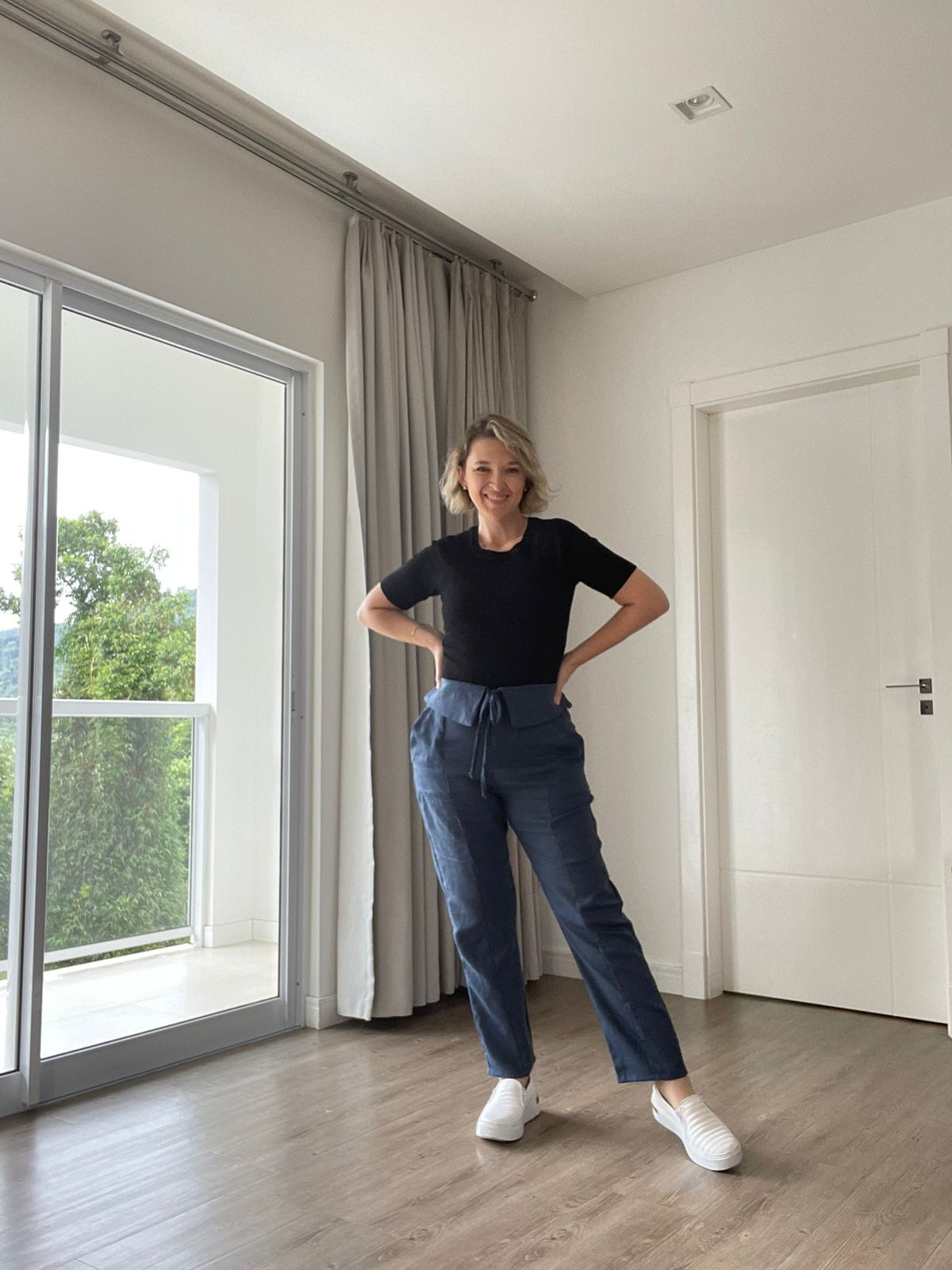 Calça Comfy com cós e bolso sobreposto