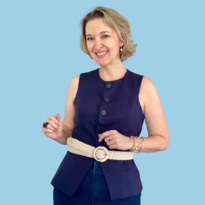 Adicione uma terceira peça estratégica e sofisticada às suas composições de dias quentes. Na Escola de Costurar, a série BLUSAS DE VERÃO apresenta a aula técnica de confecção do colete alongado com abertura no quadril. Esta peça, estruturada com recortes que valorizam o corpo, destaca-se por seu fechamento frontal com botões e por uma fenda em formato de “V” invertido na parte inferior, que proporciona leveza e liberdade de movimento.